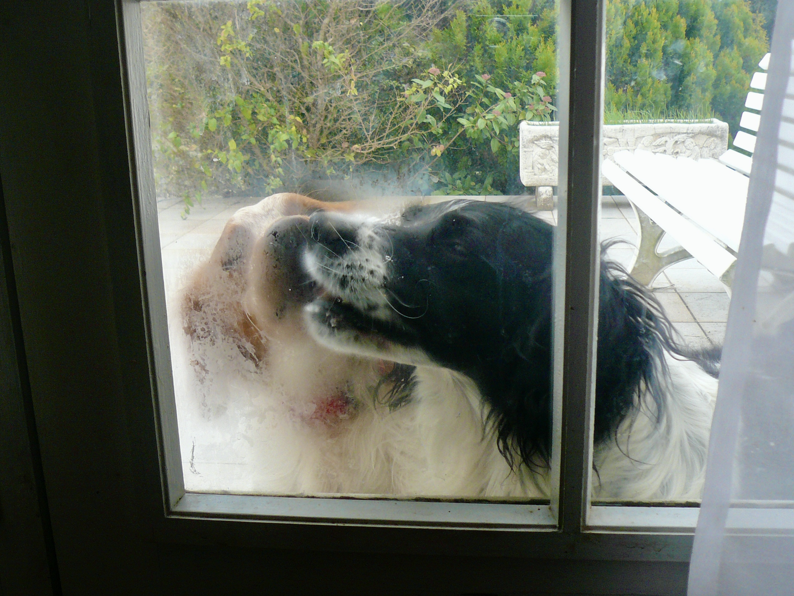 En voilà un qui revient de faire son tour. On ne sait pas où il est allé ni dans quoi il s’est vautré, mais il est visiblement très content !