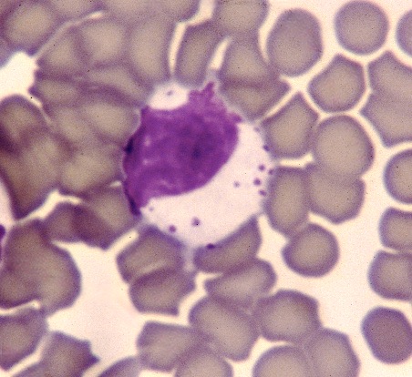 Ci-dessus : inclusions dans le cytoplasme de cellules mononucléées, chez deux chats infectés par Ehrlichia canis (avec des sérologies très positives). Les deux chats ont bien répondu au traitement.