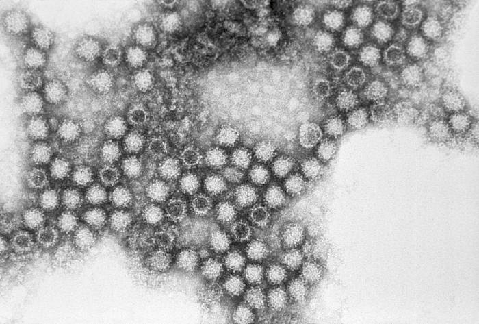 Calicivirus félins vus au microscope électronique. Source : Center for Disease Control, Domaine public.