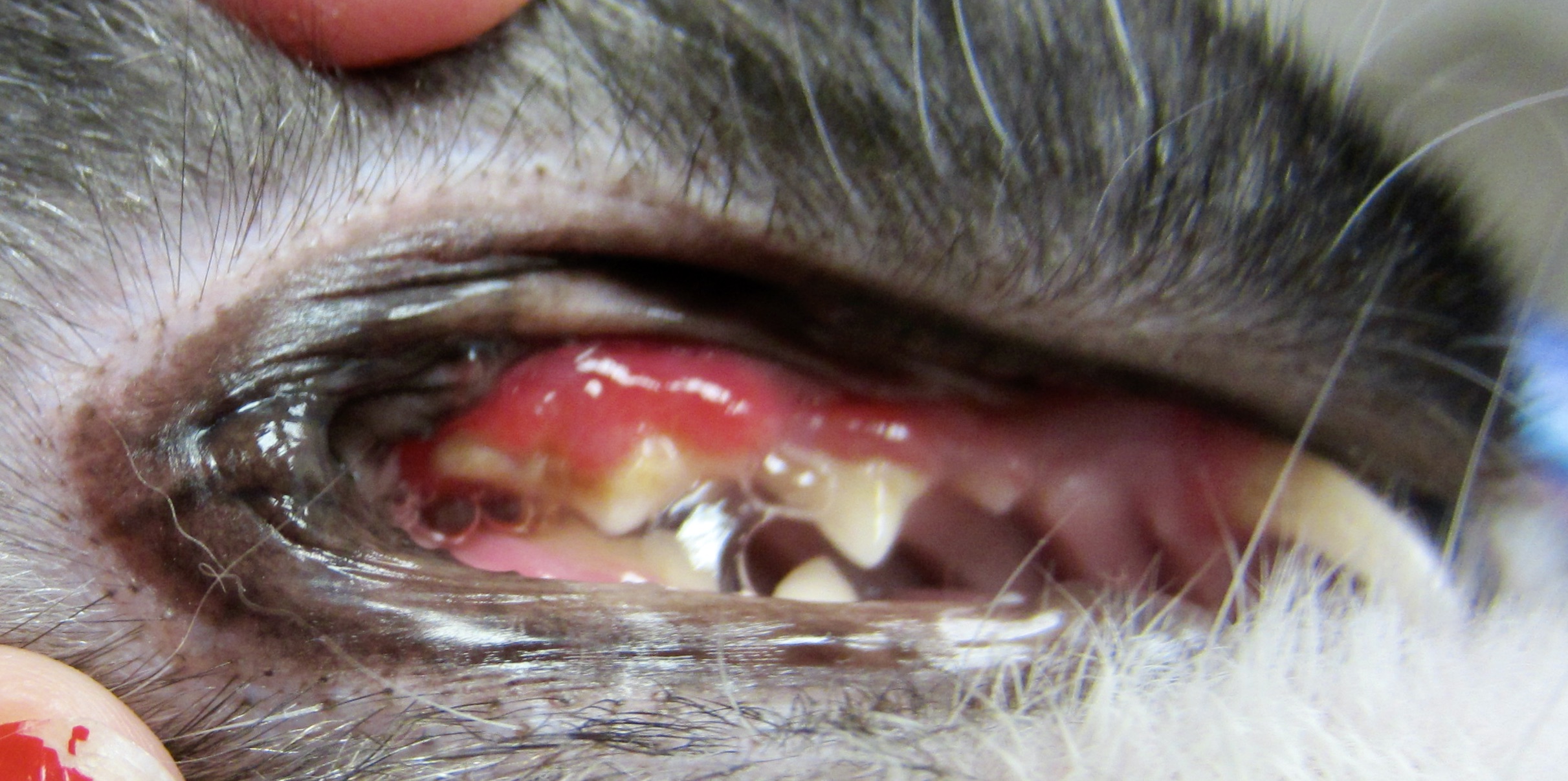 Malheureusement pas trop de doute chez ces deux pauvres matous : cette masse bourgeonnante, localisée d’un seul côté de la bouche, a tout d’une tumeur et pas grand chose à voir avec une stomatite.